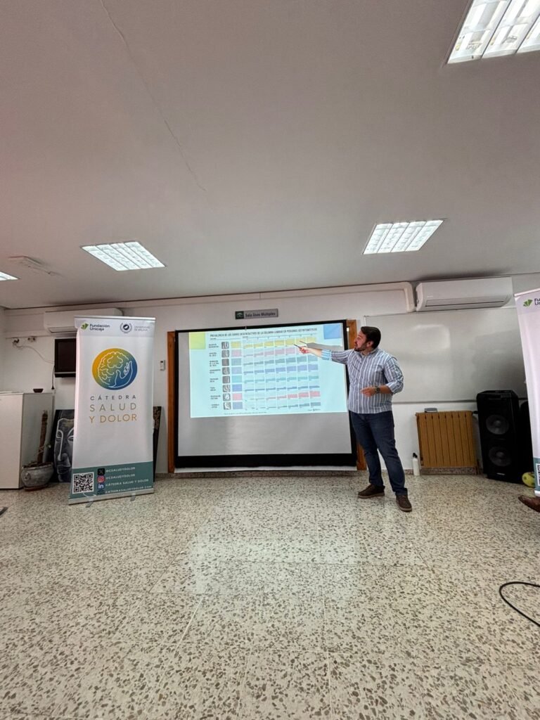 La mañana del pasado martes 14 de abril tuvo lugar un taller educativo sobre manejo de dolor en las instalaciones del Centro de Participación Activa de Pizarra, en la provincia de Málaga. En este taller, los miembros de la cátedra brindaron a los usuarios del centro un conjunto de herramientas basadas en la evidencia actualizada para la gestión y el manejo de dolor crónico. Además, se fomentó el debate sobre las ideas pre-concebidas sobre el dolor que presentaban los usuarios y pudieron resolver sus dudas sobre situaciones de dolor persistente.